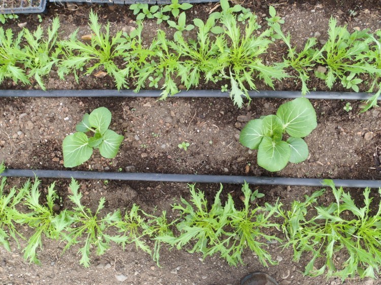 The high tunnel is planted out with spinach, arugula, mizuna, pac choi, mustard greens, endive, lettuces and radish; mostly for the Groundbreakers CSA and the early farmers’ markets. On to tomatoes and peppers…